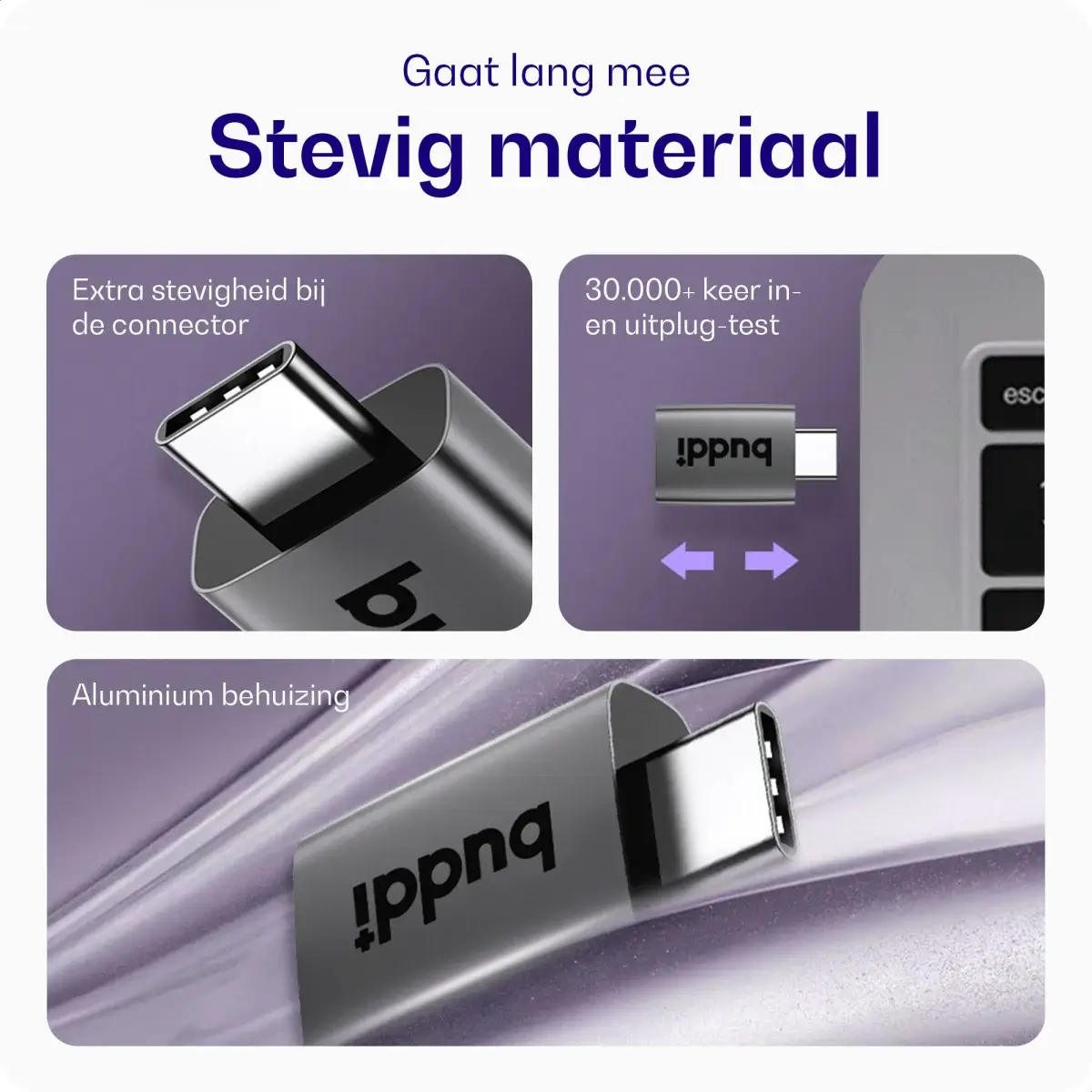 De Buddi Ease USB-A naar USB-C Adapter ondersteunt de snelle USB 3.0-standaard, wat garant staat voor hoge overdrachtssnelheden tot 5 Gbps. Dit maakt het mogelijk om grote bestanden, zoals video's en foto's, in slechts enkele seconden over te zetten. Daarnaast biedt de adapter een stabiele en efficiënte verbinding voor het opladen van je apparaten. Met deze combinatie van snelheid en betrouwbaarheid is de Buddi Ease Adapter een uitstekende keuze voor zowel dataoverdracht als opladen.